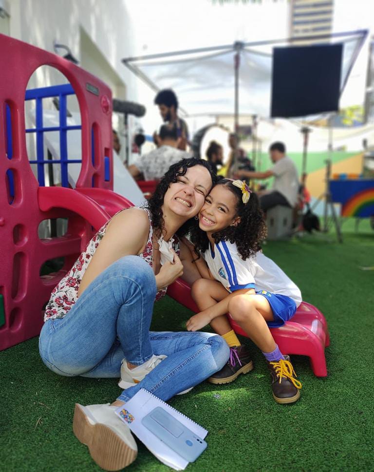 Cely Farias, atriz que interpreta a mãe da protagonista, destaca a inversão de papéis na série, “a minha personagem é a mãe da protagonista, que tá grávida. Então, é nesse universo de explicar um pouco a chegada desse irmão, não é? Além da Maitê Falcão, contraceno também com o Márcio de Paula, que faz o pai da protagonista e meu marido. Uma coisa interessante que a série traz, é essa relação familiar menos comum, que está ganhando mais espaço atualmente, a configuração onde o pai exerce muito mais a função do cuidado e da manutenção do lar, enquanto a mãe desempenha mais o papel de provedora, quem trabalha fora.”